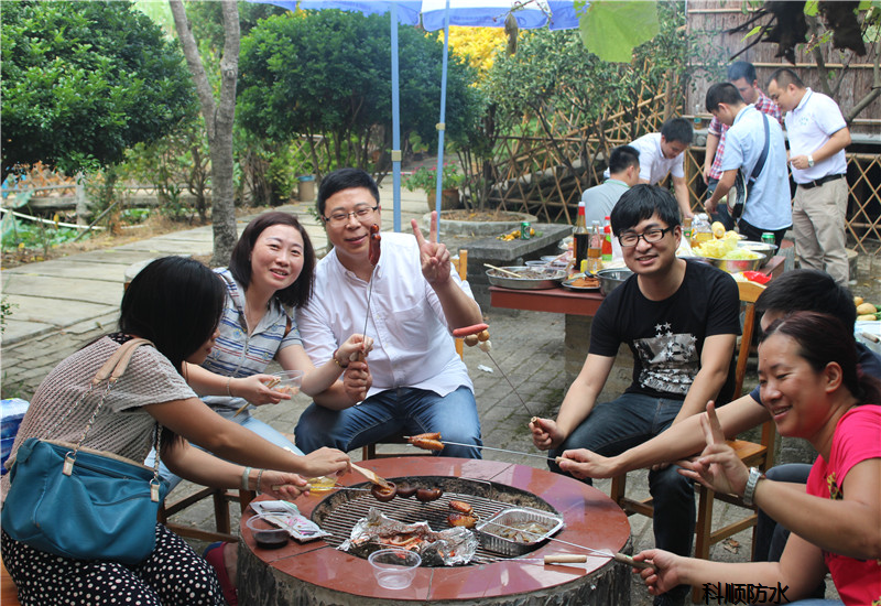 活动在公司下辖的大型农场中举行,穿过曲径的小路,掩藏在秋叶与林间的是那别致的烧烤场——座椅、遮阳伞样样齐全,水果、饮料、食材种种丰富,就等着寿星们大显身手啦!同事们中不乏烧烤界的“精英翘楚”,但也有这么一些家伙:只烤不吃,只为提升烧烤水平的“练烤者”;只吃不烤,优哉游哉的“美食大家”。对烧烤不太感兴趣的同事,则会选择到隔壁的电影场休闲消遣,顺便尝尝香喷喷的鲜鱼粥。